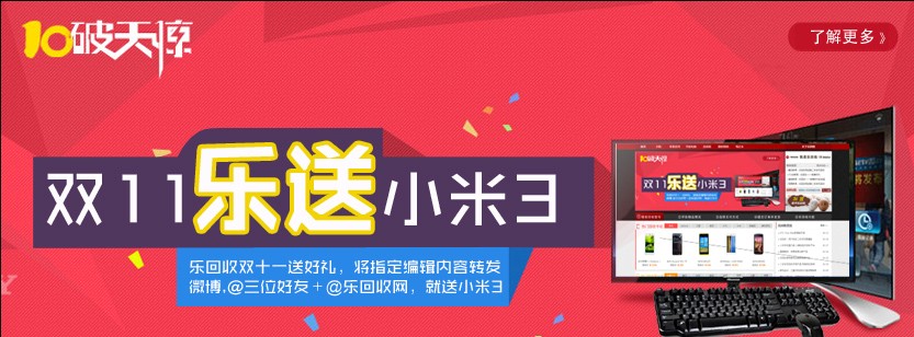 樂(lè)回收雙十一送好禮 全新小米3等你來(lái)拿!