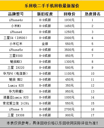 樂回收手機回收報價出爐:小米回收價跌了!