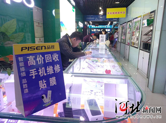 4月10日,石家莊太和電子城一手機回收柜臺生意冷清。 實習生 董達 記者 高原雪攝