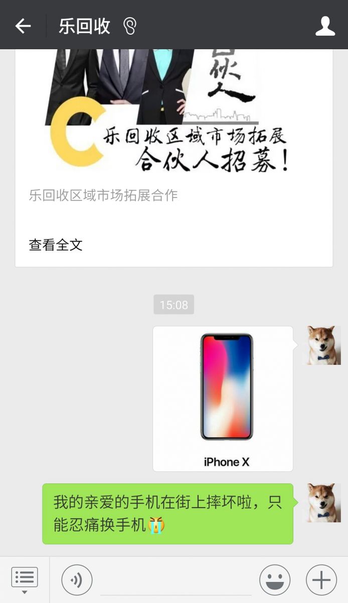 在樂回收公眾號后臺留言心儀的新手機圖片以及換手機原由